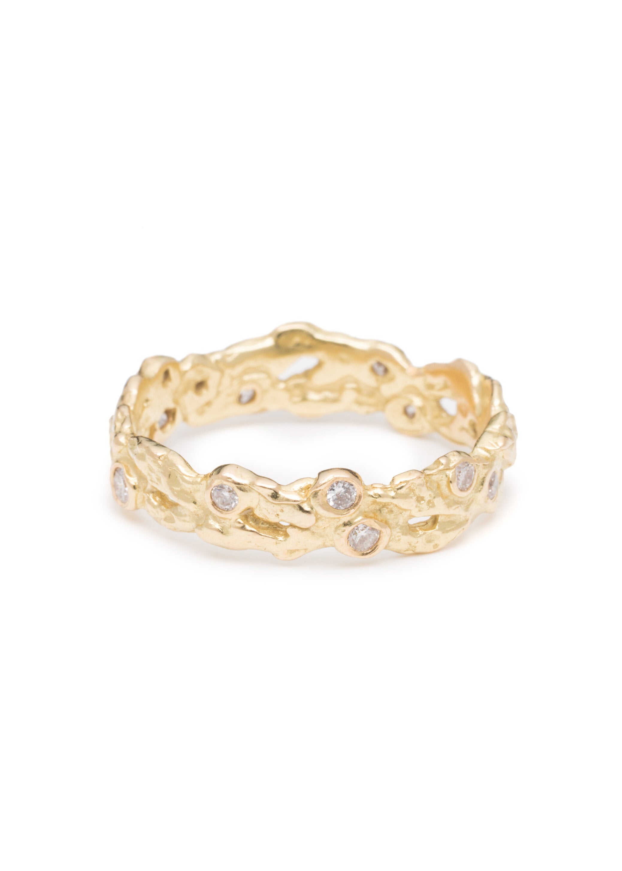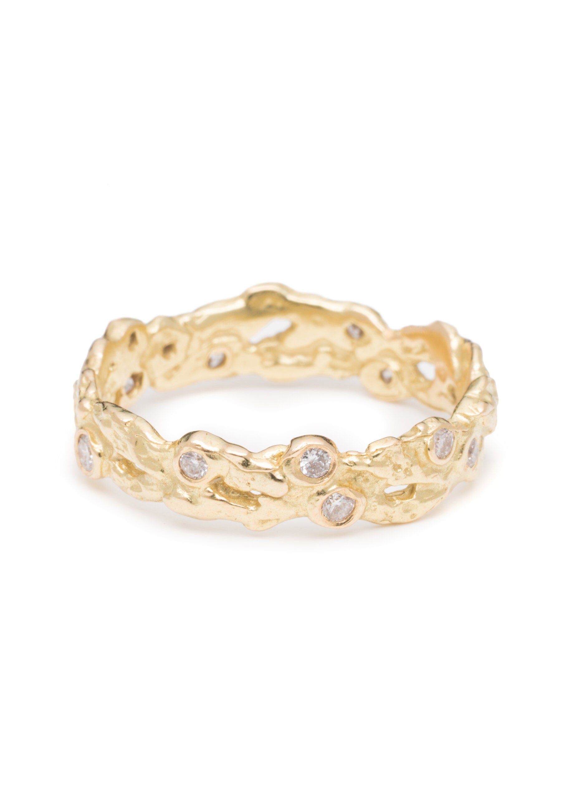 Kimberlin grew up along the seashores in Connecticut. It was always clear to her she desired to dive deeper into the world of art and design. After receiving a BFA in Fine Arts with an emphasis on sculpture from the School of the Art Institute of Chicago and Maryland Institute College of Art she travelled to Copenhagen where she participated in a workshop in Georg Jensen’s studio. She then apprenticed with a master goldsmith in Tuscany. Creating in precious metals on a smaller scale melded her artistic foundation with her love of the Earth’s beauty into a life as a fine jewelry designer working and living in New York City. Her love for creating distinctive and meaningful jewelry is echoed by her dedication to working directly with gem purveyors and mines to ensure that her pieces reflect the vivid colors, happiness and charismatic beauty our world has to offer.