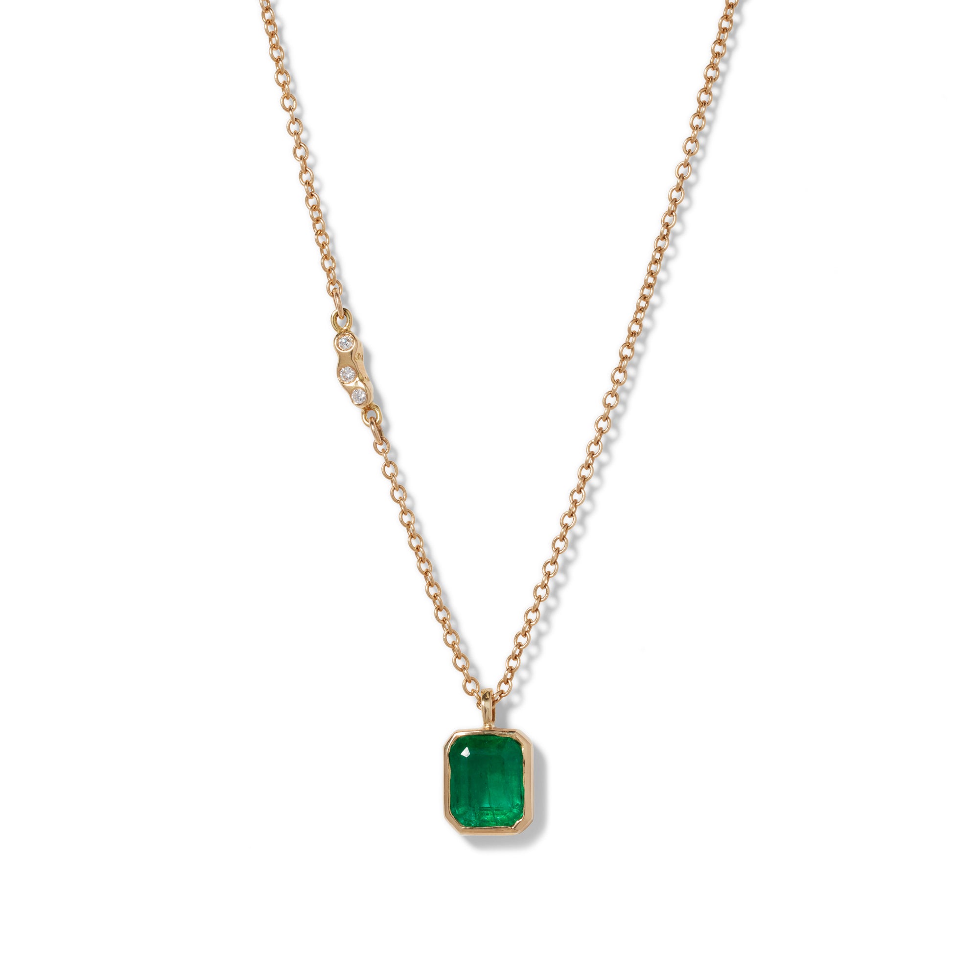 2.4 Carat Zambian Emerald pendant on 18” cable chain with 3 row Diamond spacer accent