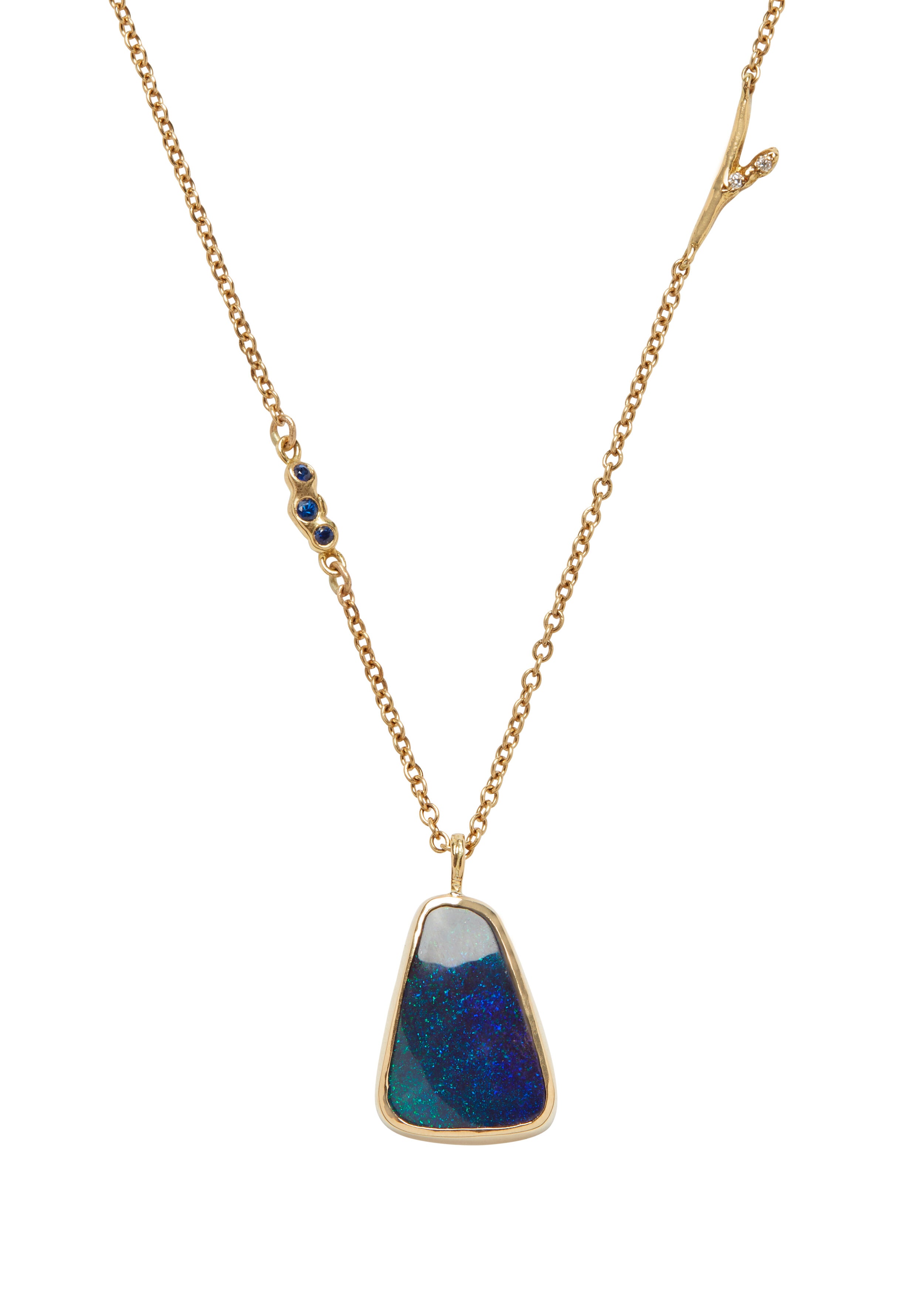 Materials | Boulder Opal, Diamond Pavé Thorn, 3 Row Sapphire, 18K Gold