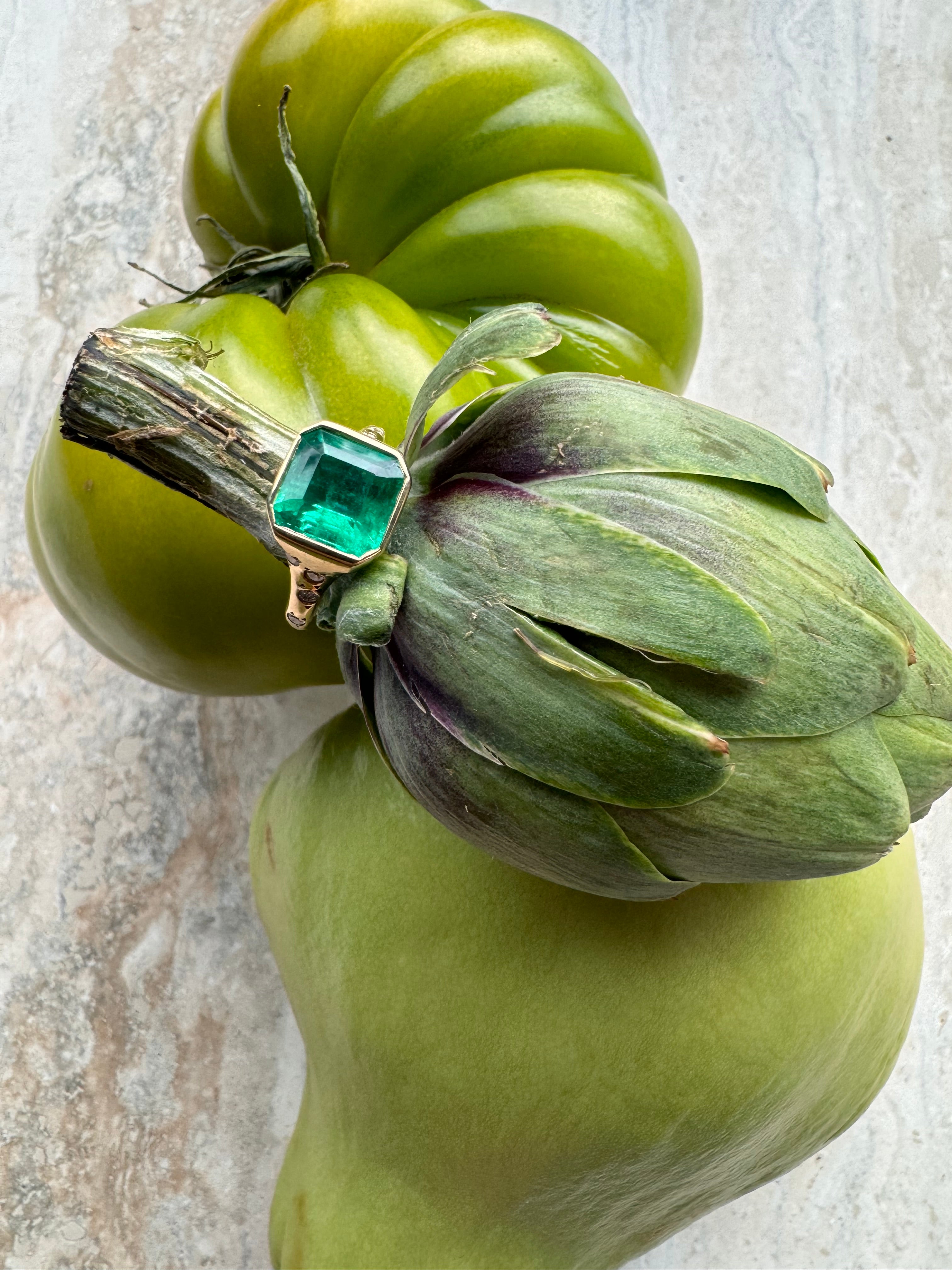 2.87 Carat Zambian Emerald with celestial diamond pavé