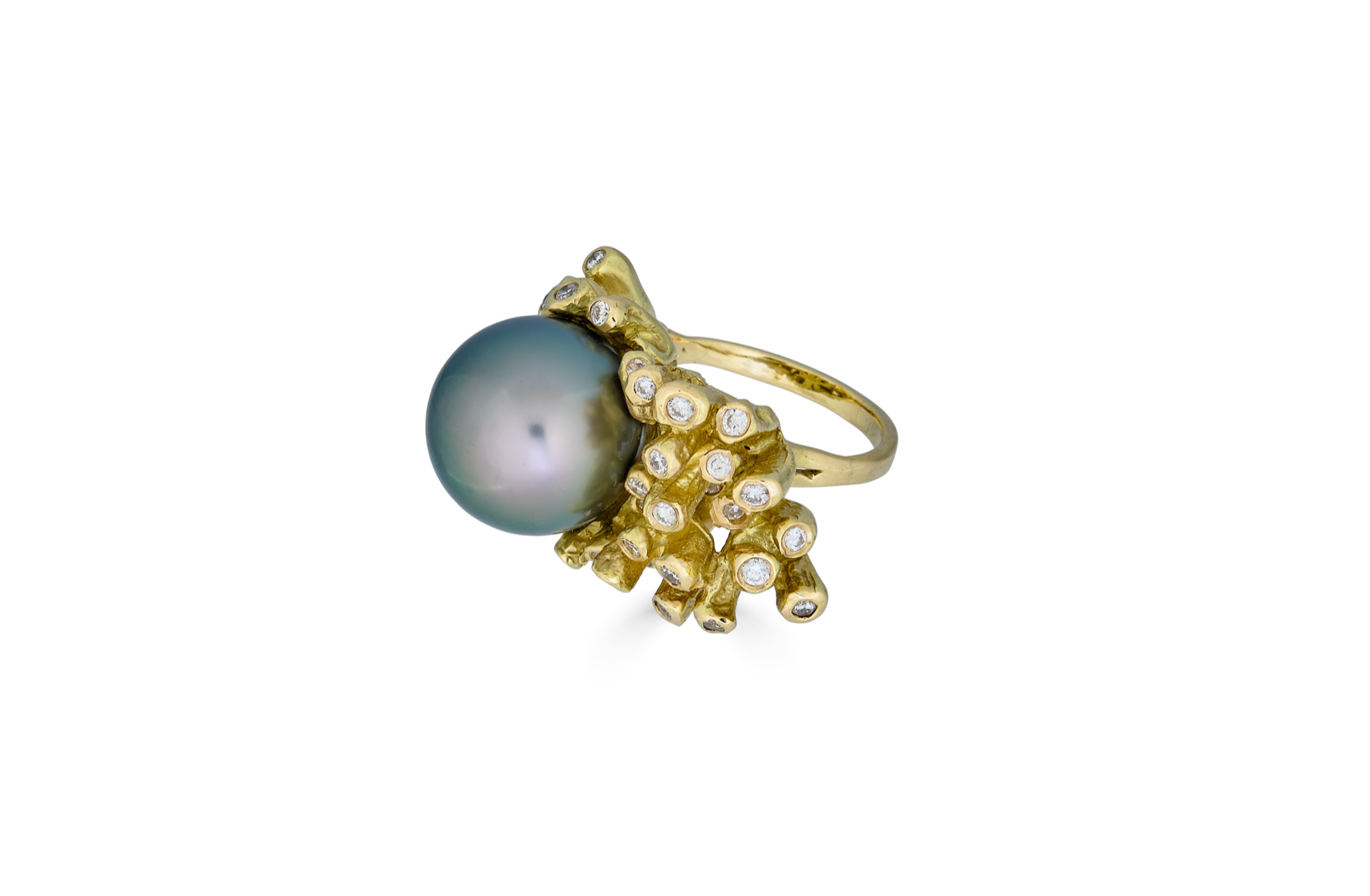 Materials | 11MM Tahitian Pearl, 1.2 carat diamonds, 18k Gold