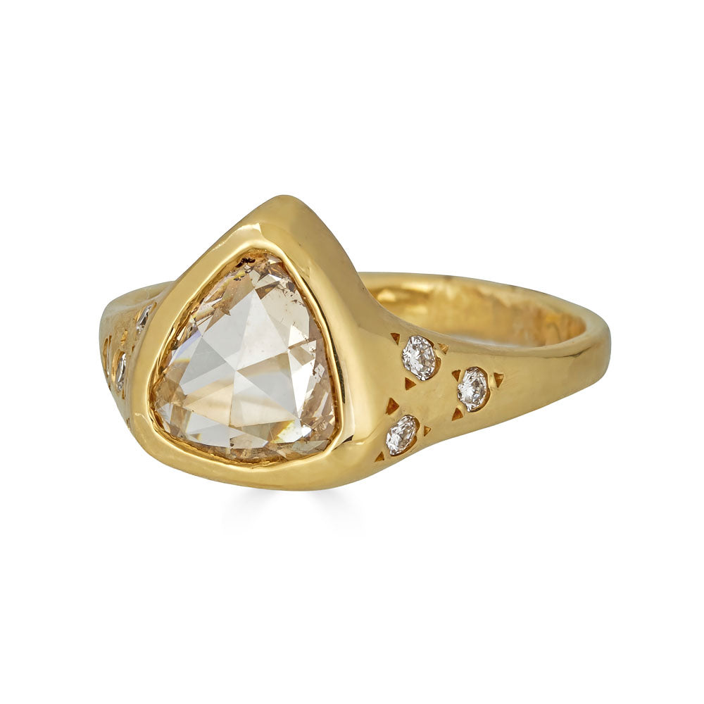 1.68 carat Rose Cut Diamond in a soft trillion shape with Celestial Diamond pavé 18k Gold